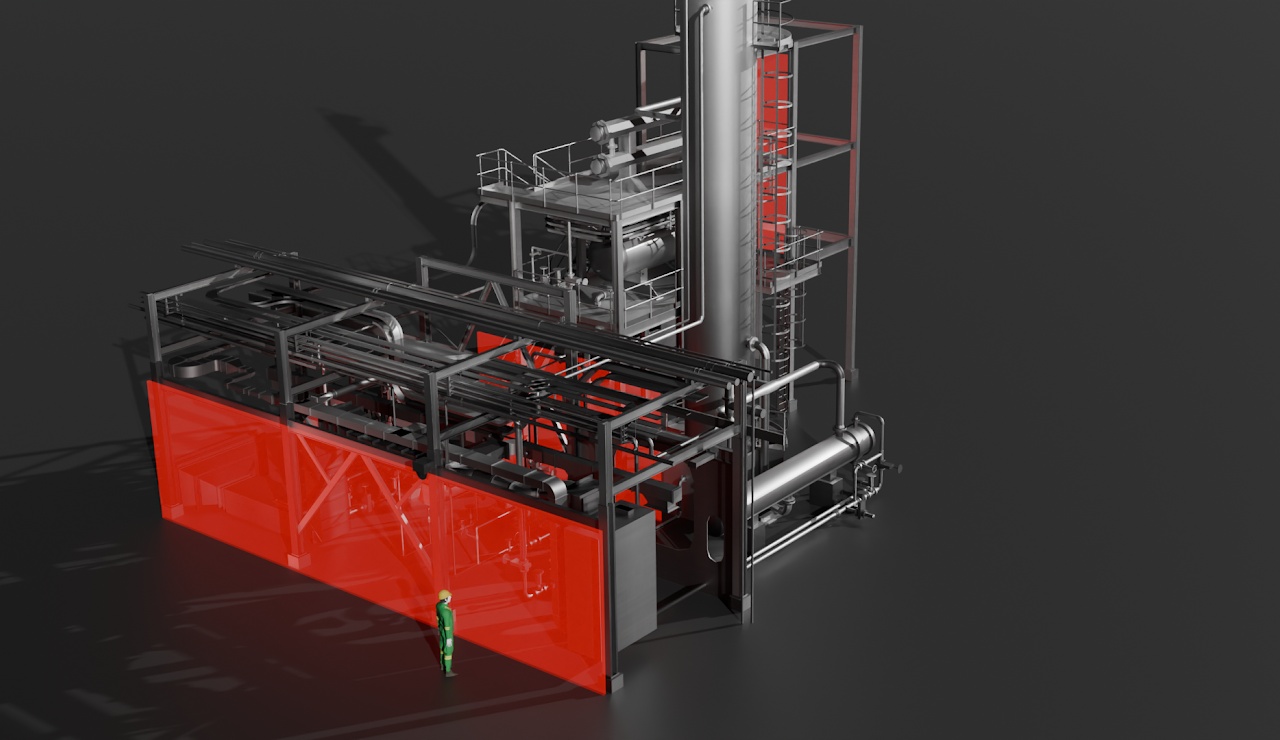 В системе установлен лидарный уровнемер, который сканирует пространство в месте установки и подает сигнал в случае появления человека в области своей видимости.