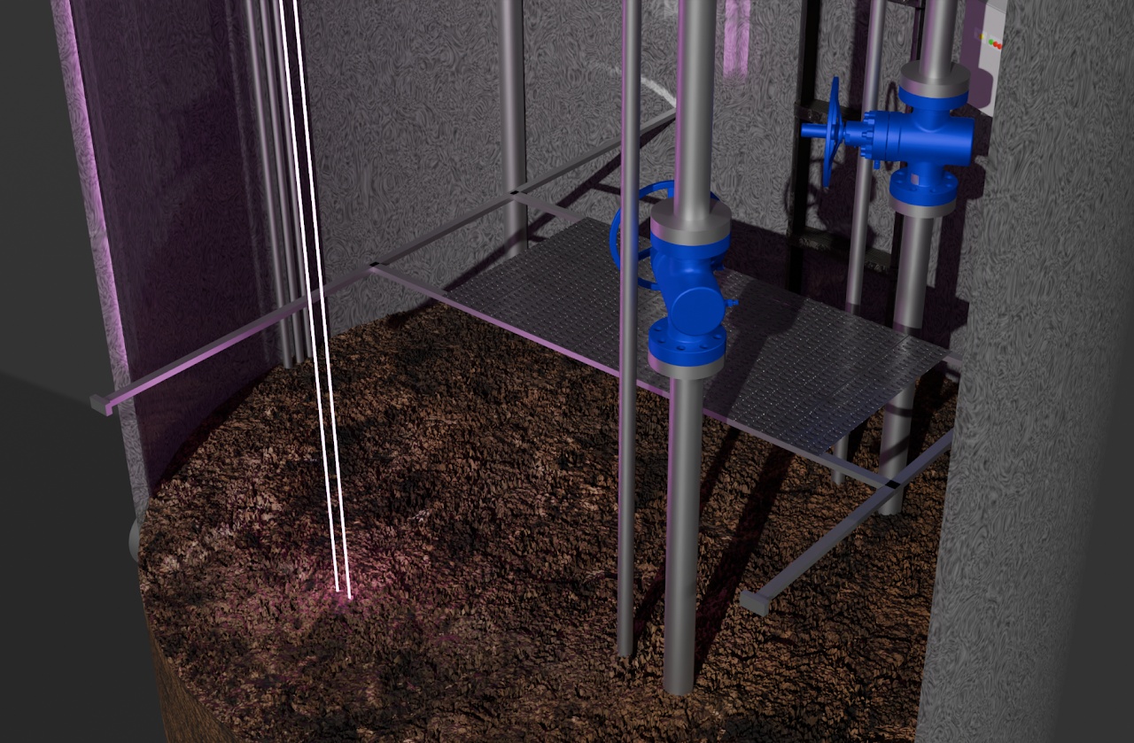 Наш лазерный уровнемер предназначен для работы в условиях КНС и приемных резервуаров с высоким содержанием металла, агрессивной средой и стесненным пространством. В отличие от радаров и ультразвука, лазерный метод не подвержен многолучевой интерференции и ложному эхосигналу от переотражений металлических стенок, решеток, направляющих и арматуры. Ультразвук неприменим в узких каналах из-за широкой диаграммы и акустических помех, радар теряет точность на неровных и композитных поверхностях, таких как слежавшийся мусор, пленка, ветошь или пенящиеся сточные воды. Лазерный луч с расходимостью до 3 мрад обеспечивает стабильное детектирование даже через малое технологическое окно, уверенно фиксируя расстояние до ила, шлама, металлолома и отходов без потери сигнала.